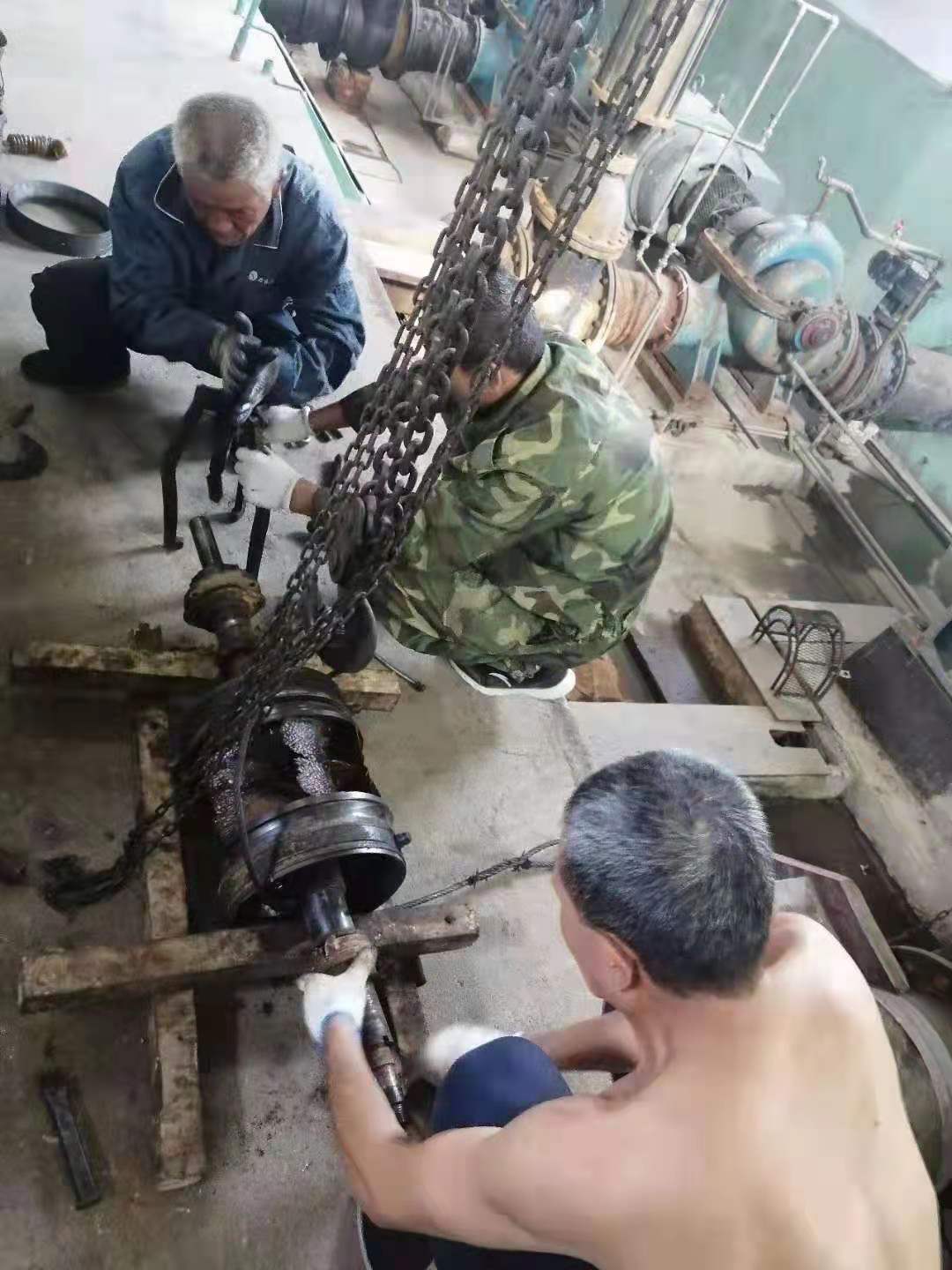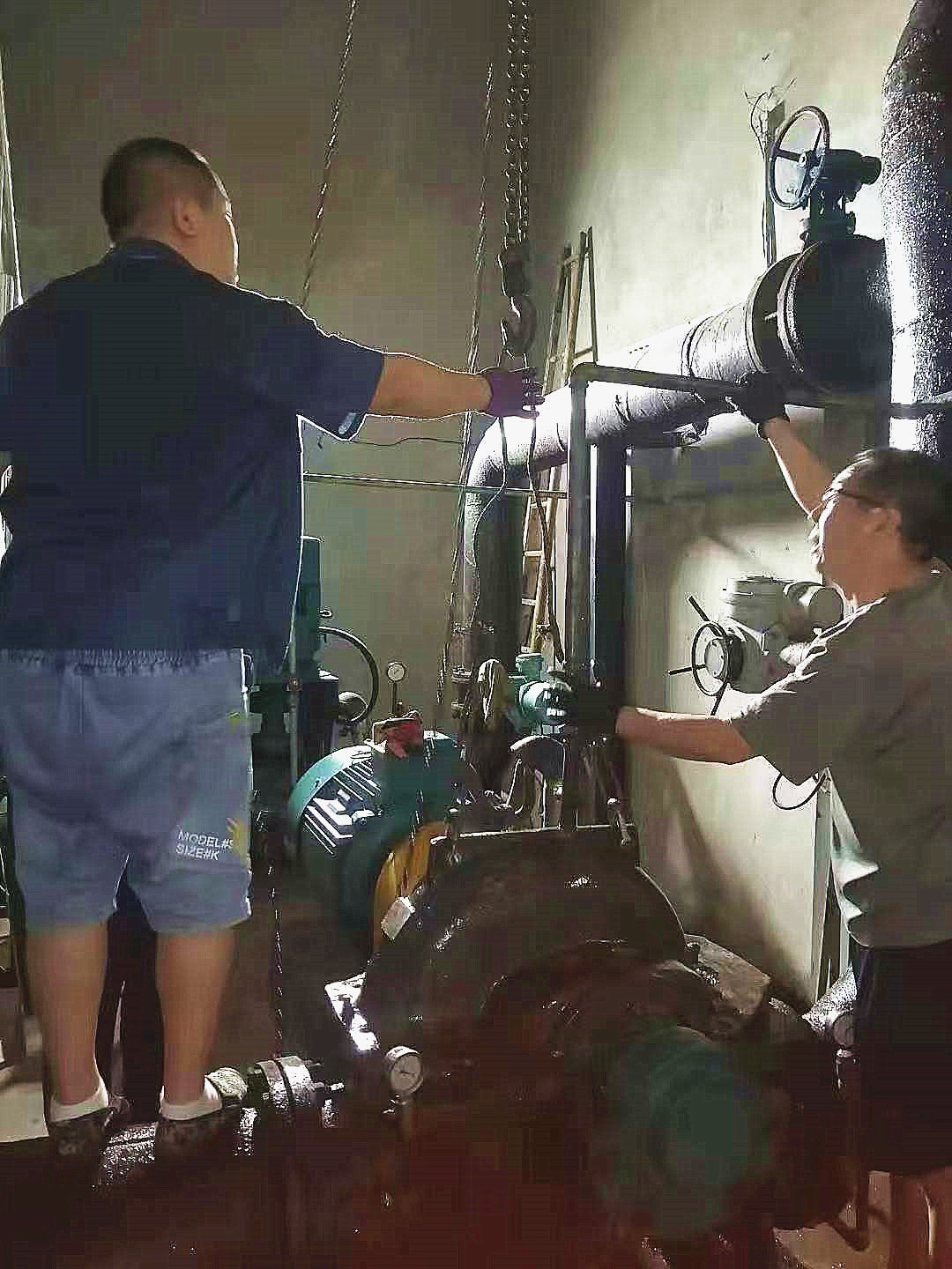 因三灣管道施工,從6月中旬開始庫區(qū)斷供,水廠全力抽取江水,水中雜物順流堵泵現(xiàn)象頻發(fā)。泵站值班人員隨時監(jiān)測運行數(shù)據(jù),及時拆卸泵殼清掏雜物以保證設(shè)備高效運行。其中愛河泵站5臺機組連續(xù)運行,堵泵情況最為嚴(yán)重。由于泵站屋頂?shù)桶L(fēng)不暢,室內(nèi)溫度超過五十?dāng)z氏度。為了維持取水效率,他們冒著中暑風(fēng)險開泵搶修作業(yè),充分展現(xiàn)了供水人愛崗敬業(yè),服務(wù)社會的精神風(fēng)貌。